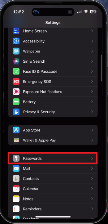 Vaše zařízení může také ukládat podrobnosti o vašem účtu Instagram, což vám umožní obnovit váš účet, aniž byste potřebovali heslo. U zařízení iOS otevřete nabídku nastavení. Přejděte dolů a vyberte „Hesla“.