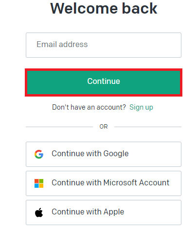 Na následující stránce klikněte na „Přihlásit se“, zadejte svou registrovanou e-mailovou adresu a vyberte „Pokračovat“.
