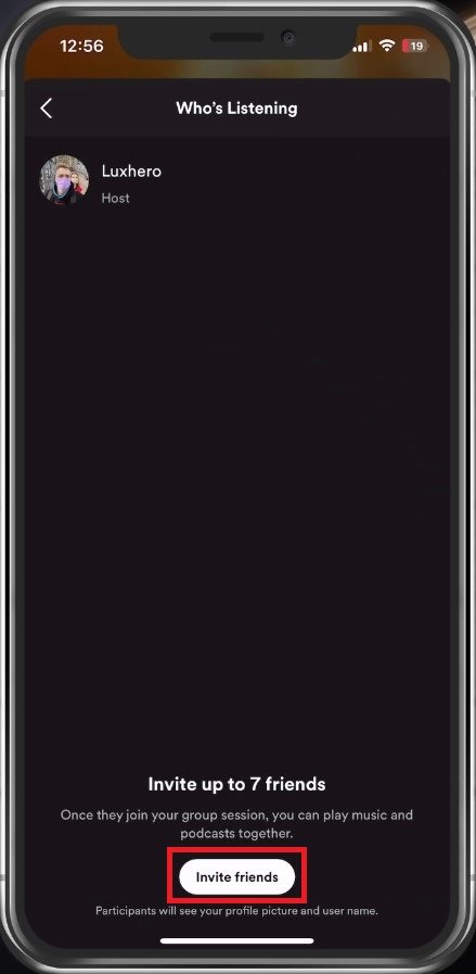 Vyberte poslední možnost a pozvěte až 7 dalších uživatelů k poslechu vaší hudby.