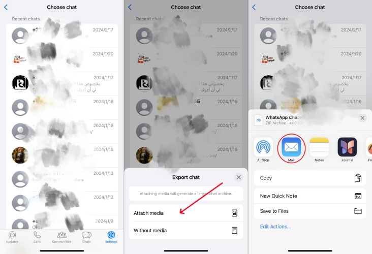 Poslední metodou přenosu WhatsApp z iPhone do iPhone je použití e-mailového chatu. Používání e-mailového chatu je více manuální přístup, který vám umožňuje posílat e-mailem historii chatu. Výhodou tohoto přístupu je, že data WhatsApp můžete přenášet selektivně. Dokončení přenosu WhatsApp z iPhone do iPhone však bude trvat dlouho.