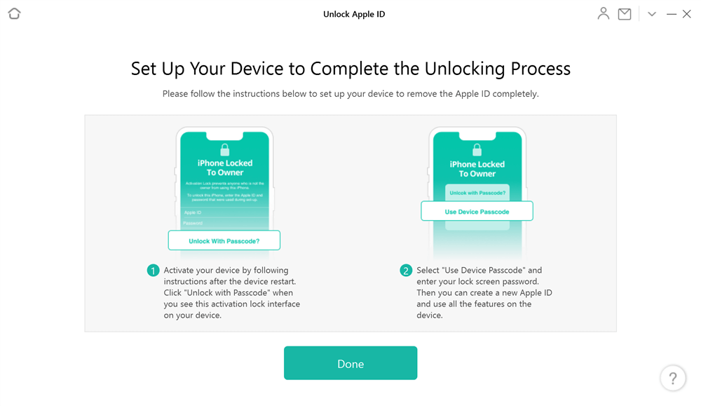 Krok 5. Po odemčení vašeho Apple ID se v AnyUnlock zobrazí následující. Stačí nastavit zařízení podle pokynů na obrazovce.
