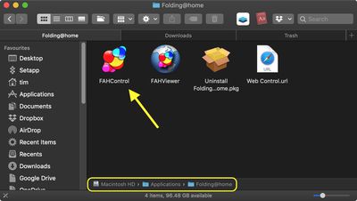 - Po dokončení instalace ignorujte webovou stránku, která se nyní otevře, a spusťte jiFAHControlaplikace zAplikace/Folding@homesložku.