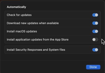 Zde klikněte naModernínebo na ikonu „i“. Ujistěte se, že všechny tyto možnosti jsou zapnuté, kroměNainstalujte aktualizace aplikací z App Store, kterou můžete nechat vypnutou. Poté můžete vyzkoušet, zda jste schopni nainstalovat nejnovější aktualizaci.