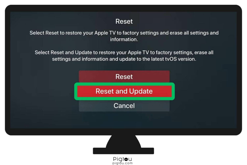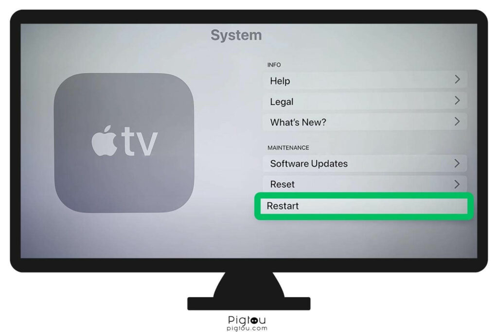 Restartujte Apple TV přes Nastavení / Obrázek: Pigtou.com2. Odstraňte a znovu nainstalujte aplikaci