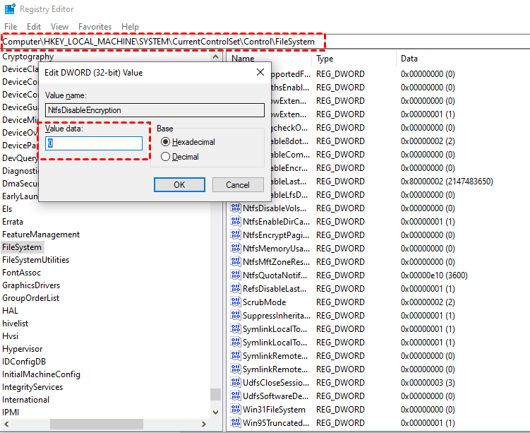HKEY_LOCAL_MACHINESYSTEMCurrentControlSetControlFileSystem