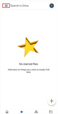 Krok 1: Přejděte na Disk Google na svém zařízení Android a klikněte na ikonu nabídky v levém horním rohu obrazovky označenou ikonou „Hamburger“.