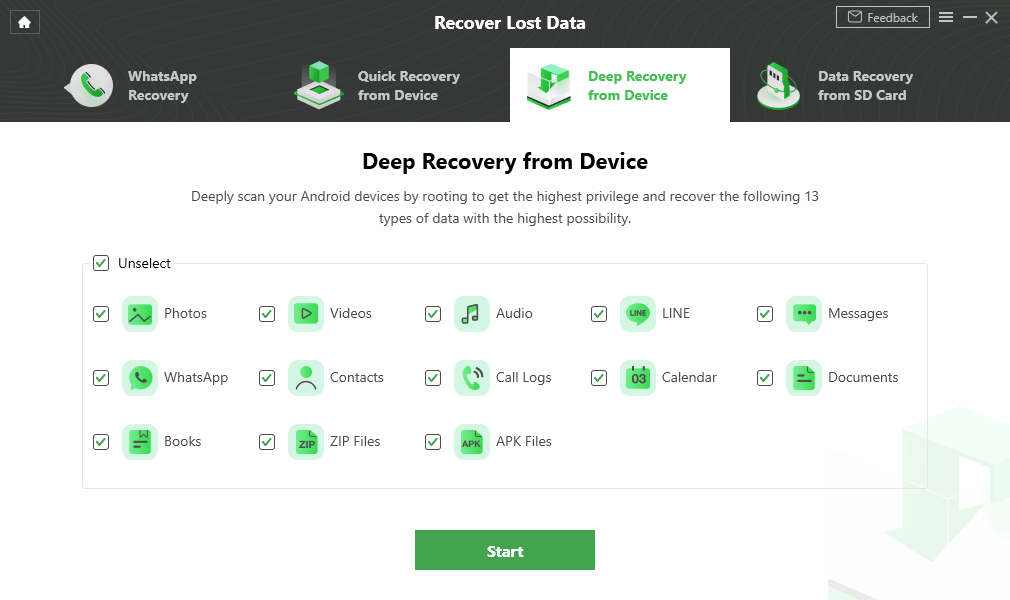 Zde je návod, jak obnovit zprávy z telefonu Android pomocí DroidKit Deep Recovery Mode: