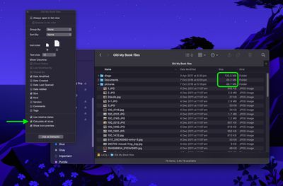 Otevřete příslušnou složku a vyberteZobrazit ➝ Zobrazit možnosti zobrazeníz panelu nabídek nebo stiskněte klávesyCommand+Ja zkontrolujteVypočítat všechny velikosti. Finder si nyní bude pamatovat vaše preference zobrazení pouze pro toto konkrétní místo.
