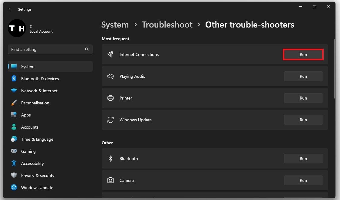 Klikněte naDalší nástroje pro odstraňování problémůa zde máte možnost spustitInternetová připojenínástroj pro odstraňování problémů. Nalezení a vyřešení běžných problémů s vaším síťovým připojením chvíli potrvá a dokončení zabere jen minutu.