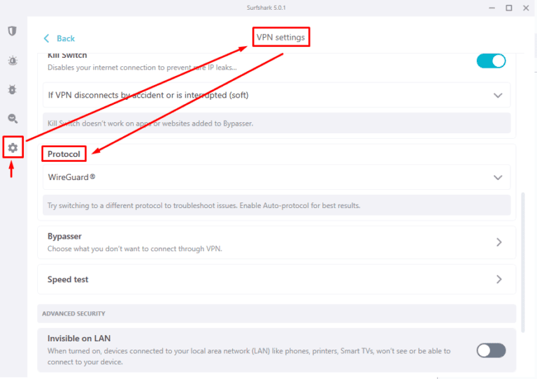 - Připojte se kprotokol WireGuardpro jeho rychlé a bezpečné připojení. Chcete-li jej povolit, přejděte do Nastavení > Nastavení VPN > Vybrat protokol.