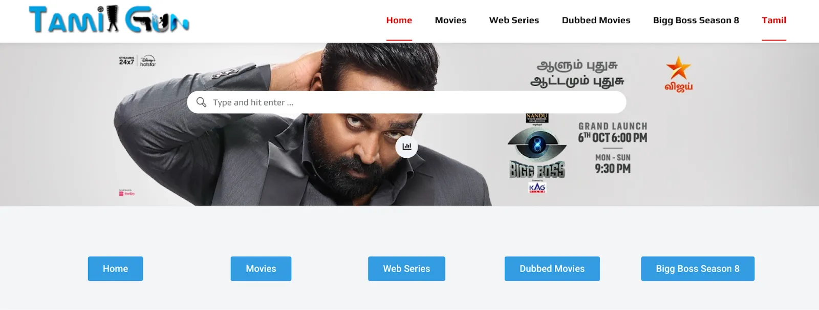 Pokud jste všichni o tamilském obsahu, pak je TamilGun jednou z nejlepších alternativ, které jsem našel k Tamilyogi. Jak název napovídá, tato stránka se zaměřuje výhradně na tamilské filmy a webové seriály, což z nich dělá útočiště pro milovníky tamilských filmů. Opravdu se mi na tom líbí, že všechny filmy jsou ve vysoké kvalitě a přehrávají se plynule bez ukládání do vyrovnávací paměti. Není třeba se registrovat ani řešit žádný složitý registrační proces – stačí hledat a sledovat!