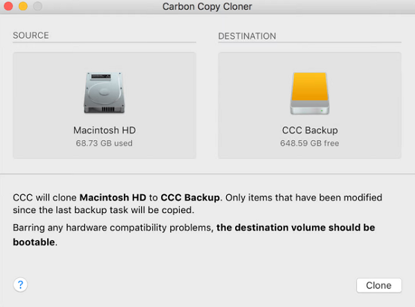 Zálohovací software pro Mac – Carbon Copy Cloner