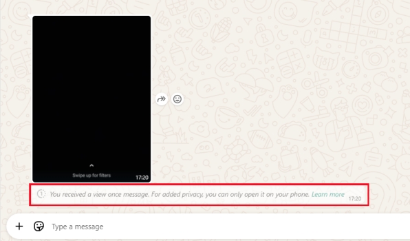 Některé rozšiřující nástroje, jako je View Once Plus – rozšíření pro Chrome, tvrdí, že obchází funkci View Once na WhatsApp pro stahování fotek. Ale ve skutečnosti tyto nástroje nemohou uživatelům pomoci stáhnout a uložit mizející fotografie WhatsApp. Instalací rozšíření WhatsApp view Once, jako je View Once Plus, není možné stahovat a ukládat fotografie na WhatsApp pro web a zobrazuje se pouze zpráva „Obdrželi jste zprávu jednou zobrazit. Pro větší soukromí ji můžete otevřít pouze na svém telefonu“.
