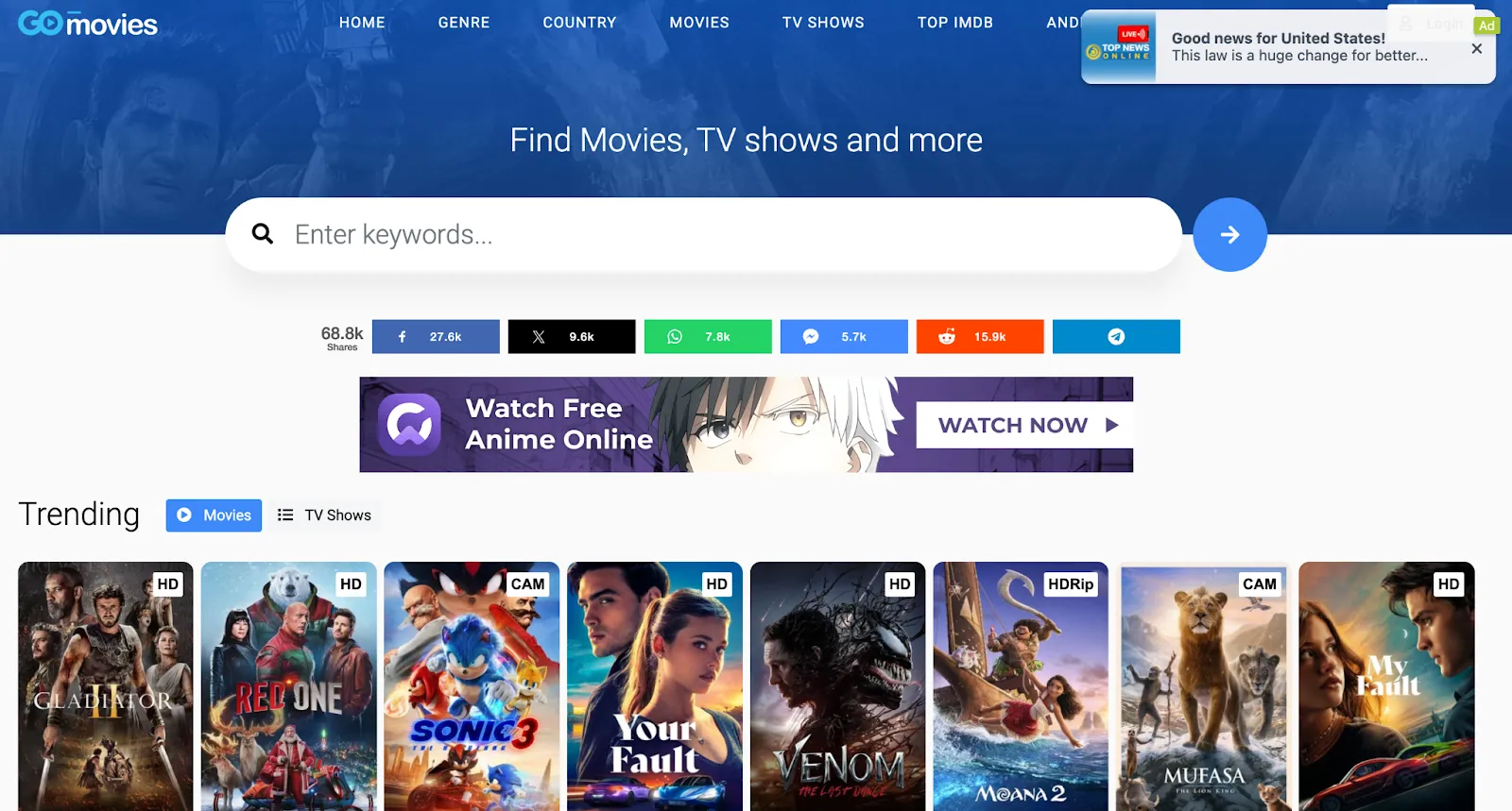 GoMovieser en ideel ublokeret filmside for dig, der tilbyder både film og tv-shows, som du kan få adgang til direkte fra dit skolenetværk. Uanset om du er i humør til klassiske film, nye udgivelser eller populære tv-serier, tilbyder GoMovies et rigt bibliotek, der opfylder forskellige visningspræferencer. Den brugervenlige grænseflade sikrer, at du nemt kan gennemse kategorier og hurtigt finde det, du leder efter.