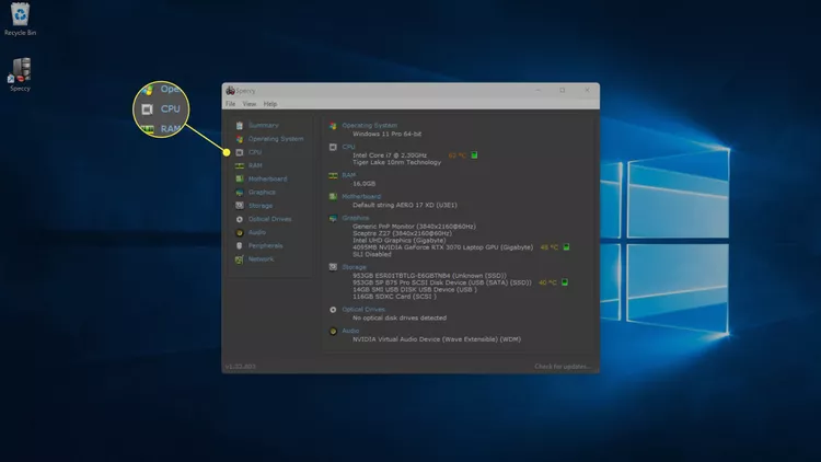 Metode 2. Brug Speccy til at kontrollere CPU-temperaturen for Windows 11