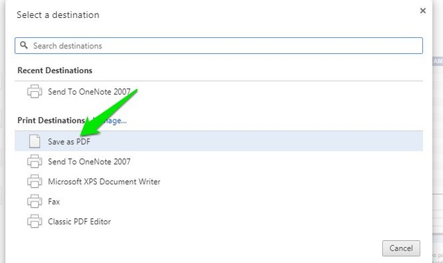 5. Vælg her"Gem som PDF"fra listen over destinationer.