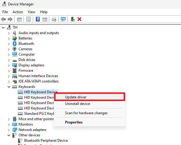 Enhedshåndtering > Enhed > Opdater driver