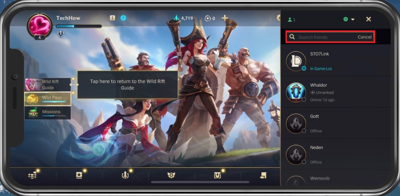 Fra din Wild Rift-hovedmenu skal du trykke på det sociale ikon øverst til højre på din skærm.