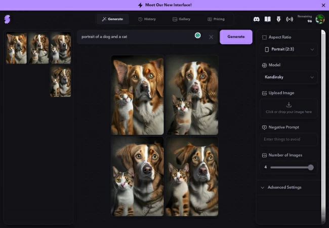 Det har vi ogsåGetIMG. Det er en online platform, der giver kunstnere og designere midlerne til at lave AI-genereret kunst ved at bruge UNITE-modellen, en maskinlæringsalgoritme, der er kendt for at fusionere to billeder og producere et karakteristisk kunstværk. Med GetIMG kan brugere ubesværet uploade deres egne billeder og vælge mellem en mangfoldig samling af fortrænede modeller, hvilket resulterer i skabelsen af visuelt betagende kunst. Platformen forbedrer den kreative proces yderligere ved at tilbyde et væld af tilpasningsmuligheder, der gør det muligt for brugerne at finjustere stilen, farven og sammensætningen af deres kunstneriske kreationer. Uanset om du har en betydelig erfaring som kunstner eller blot er i gang med din kreative rejse, tilbyder dette værktøj en fornøjelig og fremadskuende vej til at udforske de enorme kreative muligheder ved AI-teknologi, mens du laver storslåede, enestående kunstværker.