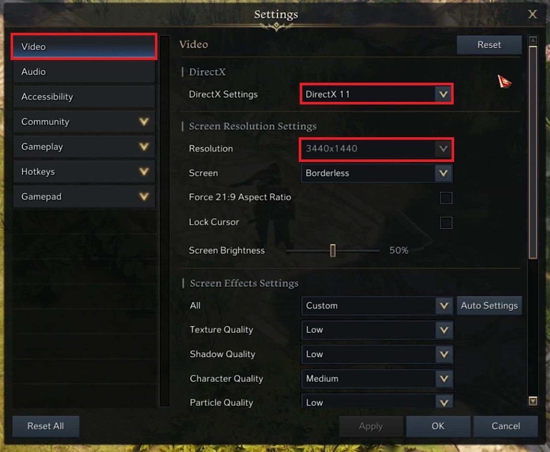 Lost Ark Video Indstillinger > Indstillinger for skærmeffekter