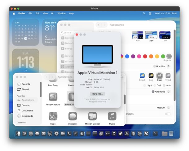 Avancerede Mac-brugere, der er kyndige med kommandolinjen, kan hurtigt bygge en MacOS Tahoe 26 beta virtuel maskine ved at udstede et par kommandoer i terminalen ved hjælp af tart. tart er et kommandolinjeværktøj til styring af virtuelle maskiner, og det er en af de absolut hurtigste måder at få en virtuel maskine med MacOS Tahoe 26 til at køre på enhver Apple Silicon Mac. Efter at kommandoerne er udført med succes, vil macOS Tahoe 26 beta køre i en virtuel maskine med vinduer med det samme, og ydeevnen er ganske god på enhver Apple Silicon Mac. Dette er virkelig så hurtigt, som det bliver for Tahoe VM-implementering, og efter du har oplevet dette, vil du sandsynligvis blive en fan af tærte.