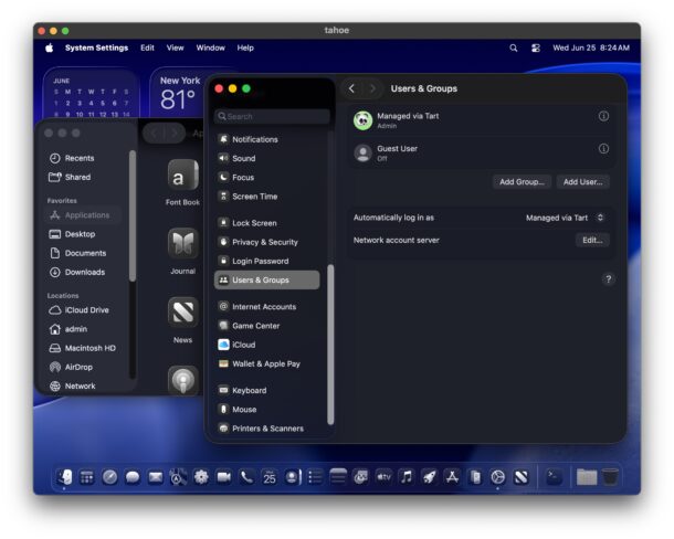 For mange af os, der er fortrolige med kommandolinjen, er det så meget hurtigere og nemmere at få en vm til at køre gennem tart end standardprocessen med at bruge virtualiseringssoftware, og derefter enten bruge et MacOS-installationsprogram eller IPSW-fil til at oprette en virtuel maskine og derefter manuelt gennemgå standard VM- og MacOS-opsætningsprocessen. Tre kommandoer er alt, der skal til, og Tahoe VM-skrivebordet dukker hurtigt op på din Mac.