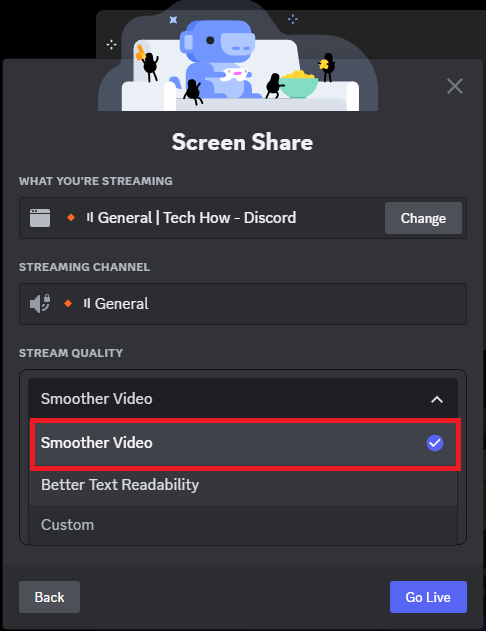 Når du går videre, bør du optimere indstillingerne for Discord-serveren og kanalen, hvor du planlægger at dele din skærm.