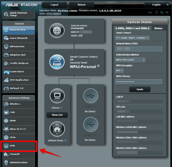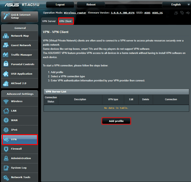 - Åbn din routerKontrolpanelog naviger tilVPNafsnit.
