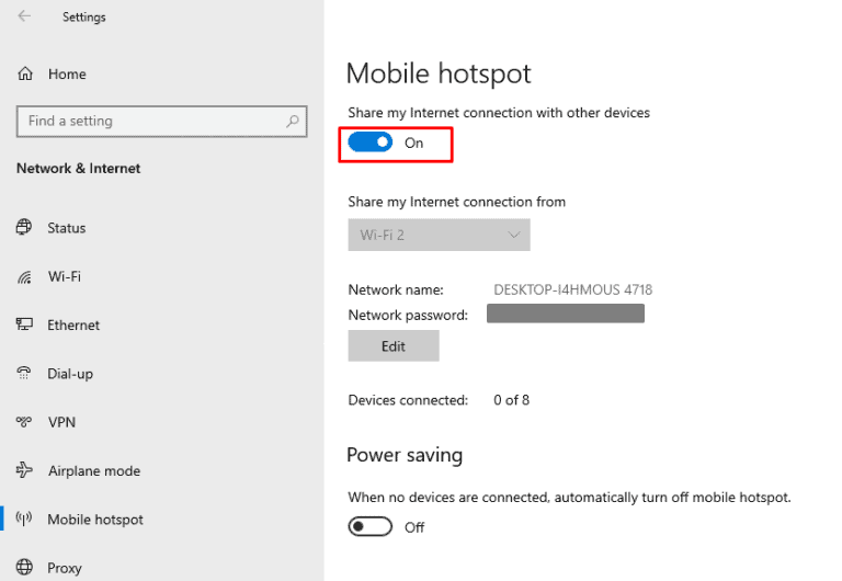 - Fra rullemenuen skal du vælge det mobile hotspot, du lige har oprettet.