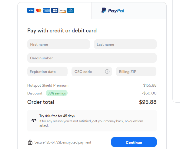 Klik på voresHotspot Shield rabatlinkog vælg en abonnementsplan.