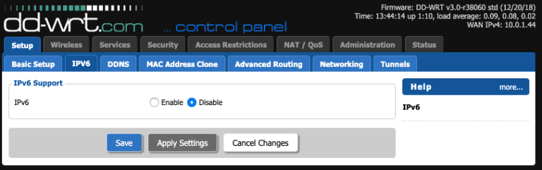 - På din routers kontrolpanel skal du gå til "Opsætning" fanen og deaktiver "IPv6." Klik på "Spare" og derefter "Anvend indstillinger.”