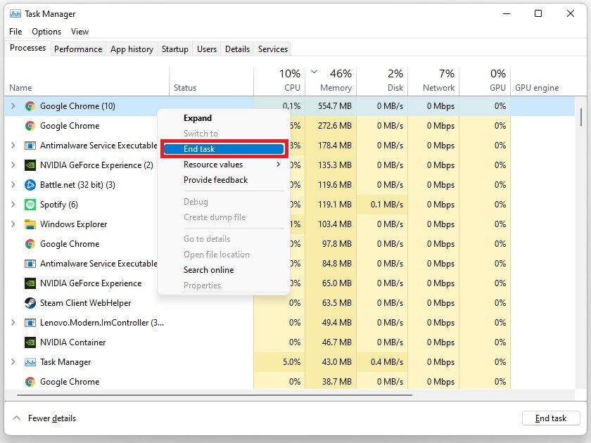 Når du har anvendt dine ændringer, kan du lukke spillet og åbne dinTask Manager. For at reducere CPU-udnyttelsen fra andre programmer, foreslår vi, at du stopper nogle programmer fra at køre i baggrunden, hvilket du ikke har brug for, når du spiller spillet. Men sørg kun for at afslutte programmer fra at køre, som du ved ikke vil ødelægge dit operativsystem.