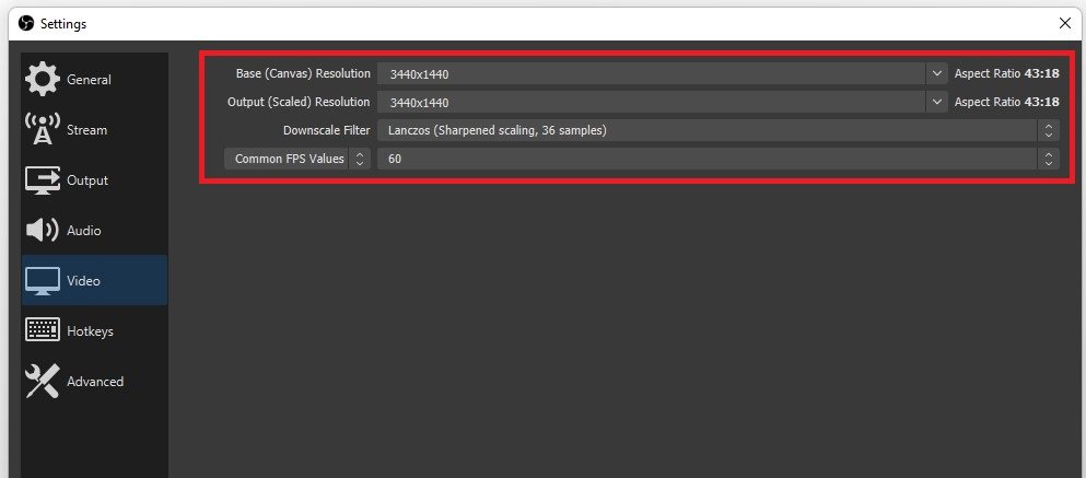 OBS Studio-indstillinger > Video