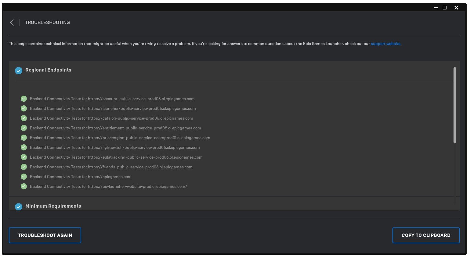 Epic Games Indstillinger > Fejlfinding
