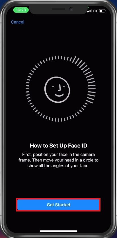 Placer dit ansigt i kamerarammen, og flyt dit hoved i en cirkel for at vise alle vinkler af dit ansigt. Efter at have fulgt trinene, bør Face ID-godkendelsen på din enhed fungere fint, selv når du konfigurerer den, mens du bærer en maske på nyere enheder.