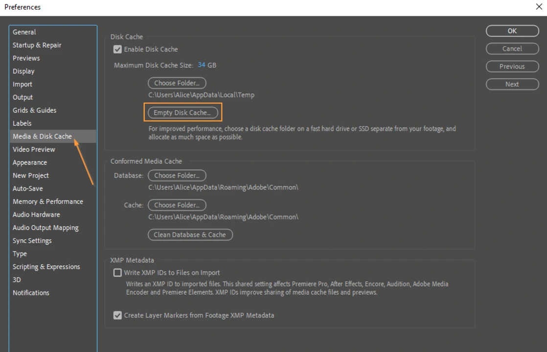5. Ryd After Effects-cachen