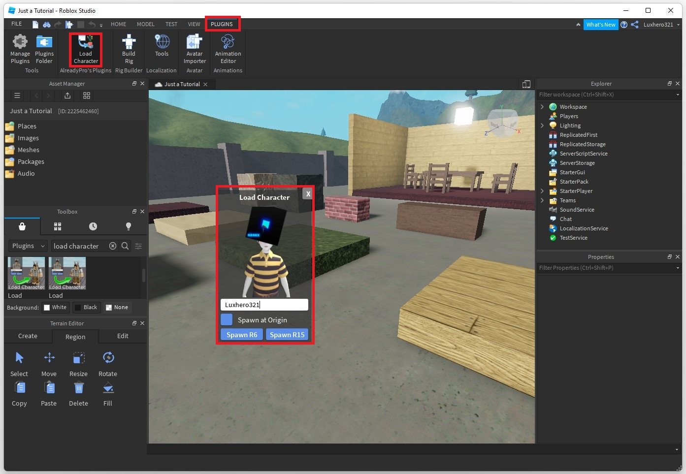 Roblox Studio > Plugins > Indlæs tegn