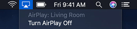 fra listen over tilgængelige enheder.ellerNår du er tilsluttet, vil kampen AirPlay på dit Apple TV eller Smart TV.