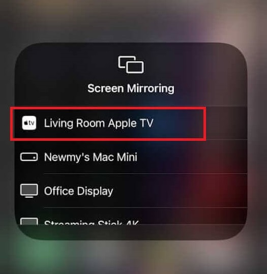 (4) Vælg dinApple TVellerAirPlay-kompatibelt TVfra listen over tilgængelige enheder.