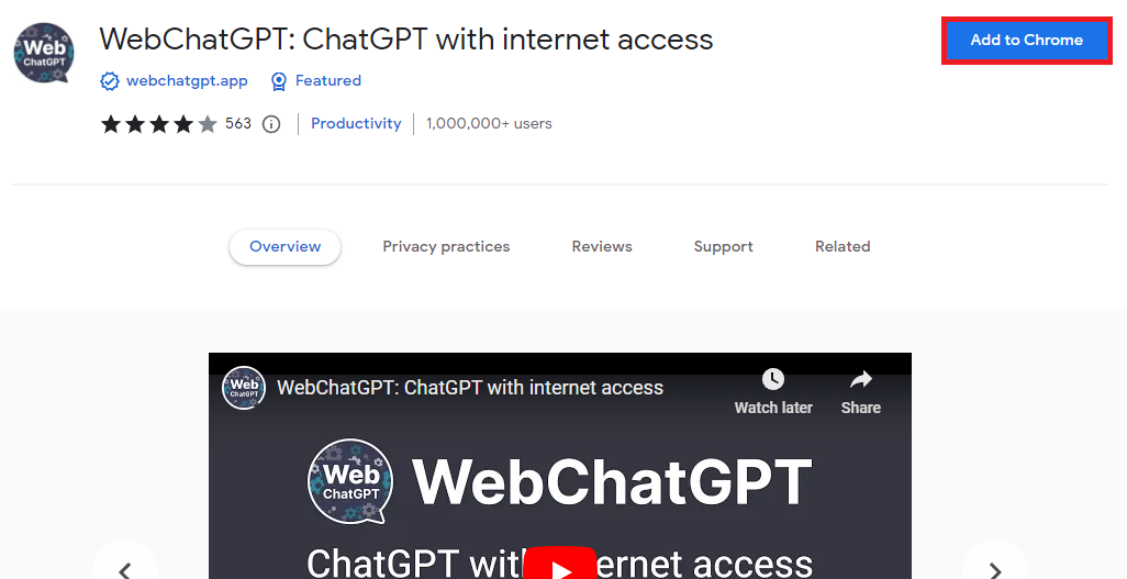 Få adgang til WebChatGPT-udvidelsen: Klik herfor at få adgang til WebChatGPT Chrome-udvidelsen.