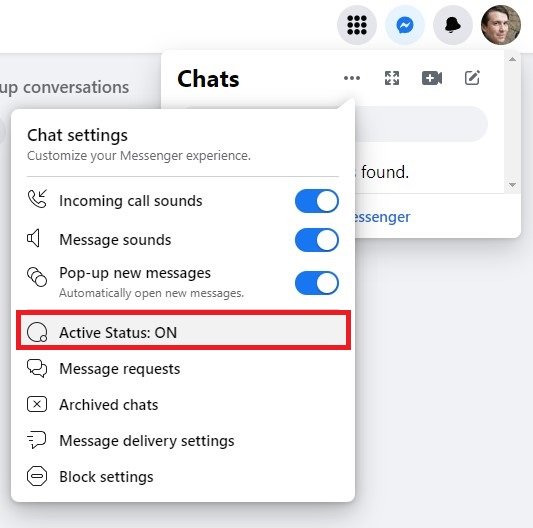 Når du klikker på burgermenuikonet, burde du kunne se detteAktiv statusvalgmulighed.