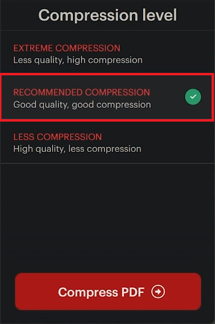 iLovePDF tilbyder tre kompressionsniveauer, der passer til forskellige behov: