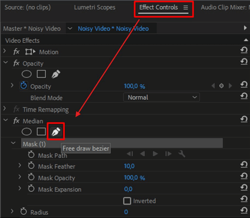 Brug om nødvendigt masker til at fokusere på specifikke støjende områder. Brug penneværktøjet til at tegne masker eller vælg en foruddefineret form. På denne måde kan du reducere støj uden at påvirke hele klippet.