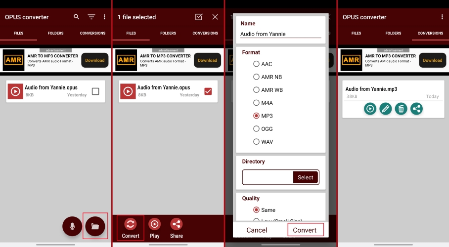 For mobiltelefonbrugere kan du downloade konverteringsværktøjer, der understøtter konvertering af OPUS til MP3, fra app-butikken. Der er mange programmer til at konvertere lydformater, og du skal være forsigtig, når du vælger. Her tager vi OPUS converter som eksempel.