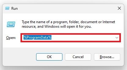 Hvis du stadig har problemer med at finde denne spilversion, selv når du ejer Overwatch 1, så ryd din Blizzard launcher cache. Brug genvejenCTRL + R; i denne dialogboks skal du skrive%ProgramData%og tryk enter.