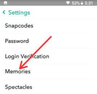 Trin 3. På skærmbilledet Erindringer vil du kunne se mulighederne for lagring og lagring. Du kan aktivere Smart Backup-funktionen, der er placeret i undermenuen Storage, hvis du vil sikre dig, at alle optagelser, du laver med Snapchat, er sikkerhedskopieret, selvom du ikke har adgang til et WiFi-netværk.