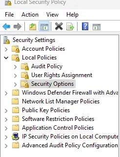 Trin 3: Klik påLokale politikkerfor at afsløre muligheder og klik påSikkerhedsindstillinger.