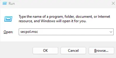 Trin 1: Tryk på Win + R for at starte boksen Kør og skrivSecpol.msc.