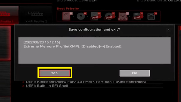 Gem Extreme Memory Profile (XMP)-konfiguration og afslut