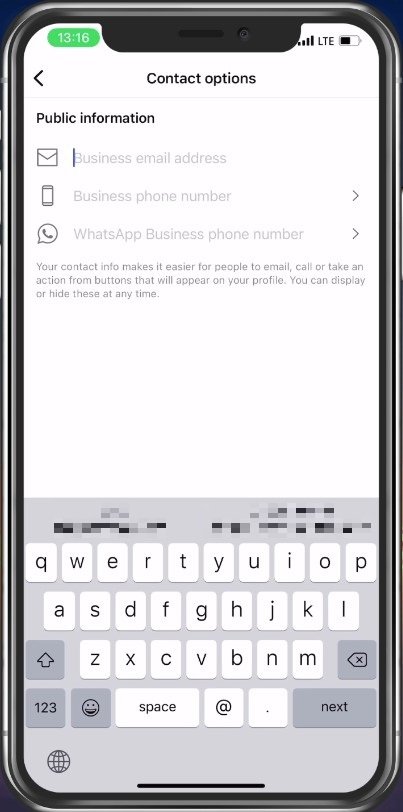 UnderProfiloplysninger, vælgKontaktmuligheder.